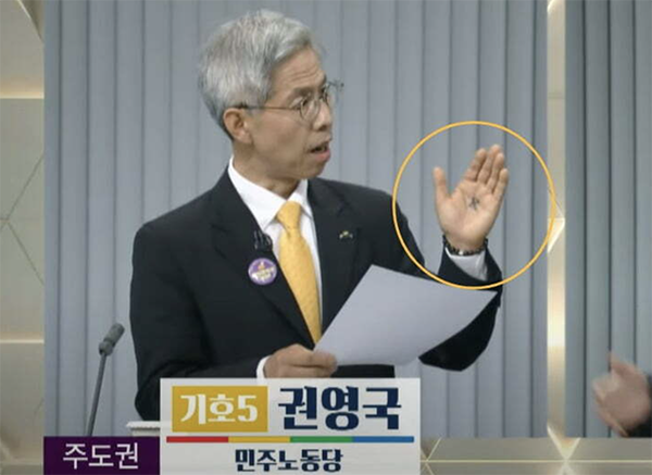 정치에는 말보다 더 강렬한 '이미지'가 있습니다. 2025년 5월 23일 열린 TV토론회에서 민주노동당 권영국 후보가 보여준 상징 정치 한 장면이 바로 그런 사례죠. 그는 왼쪽 손바닥에 큼지막하게 '民'(백성 민) 자를 쓰고 등장했습니다. 이 장면은 즉각 언론과 SNS에서 화제가 되었고, 많은 사람들이 3년 전을 떠올렸습니다. 바로 윤석열 당시 후보의 '王'(임금 왕) 자 사건입니다.