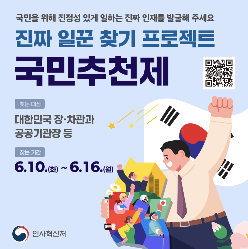 “이 사람 정말 잘하고 있어요. 국민의 눈으로 뽑는 공직자, 지금 직접 추천해 보세요.”